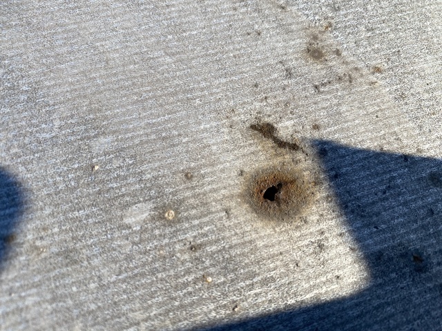 雨漏りしたということで屋根の確認をしたら、屋根材に錆があり、穴が開いていました。