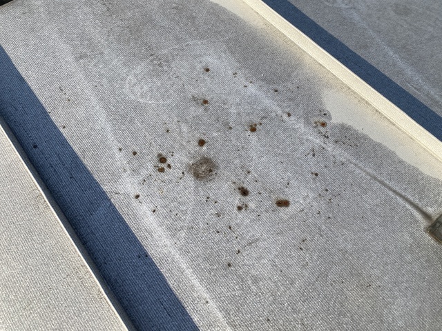 雨漏りしたということで屋根の確認をしたら、屋根材に錆があり、穴が開いていました。