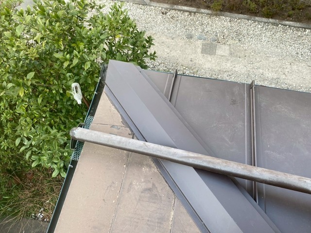 屋根材が勾配に向いてないところに、屋根の段差の部分があり